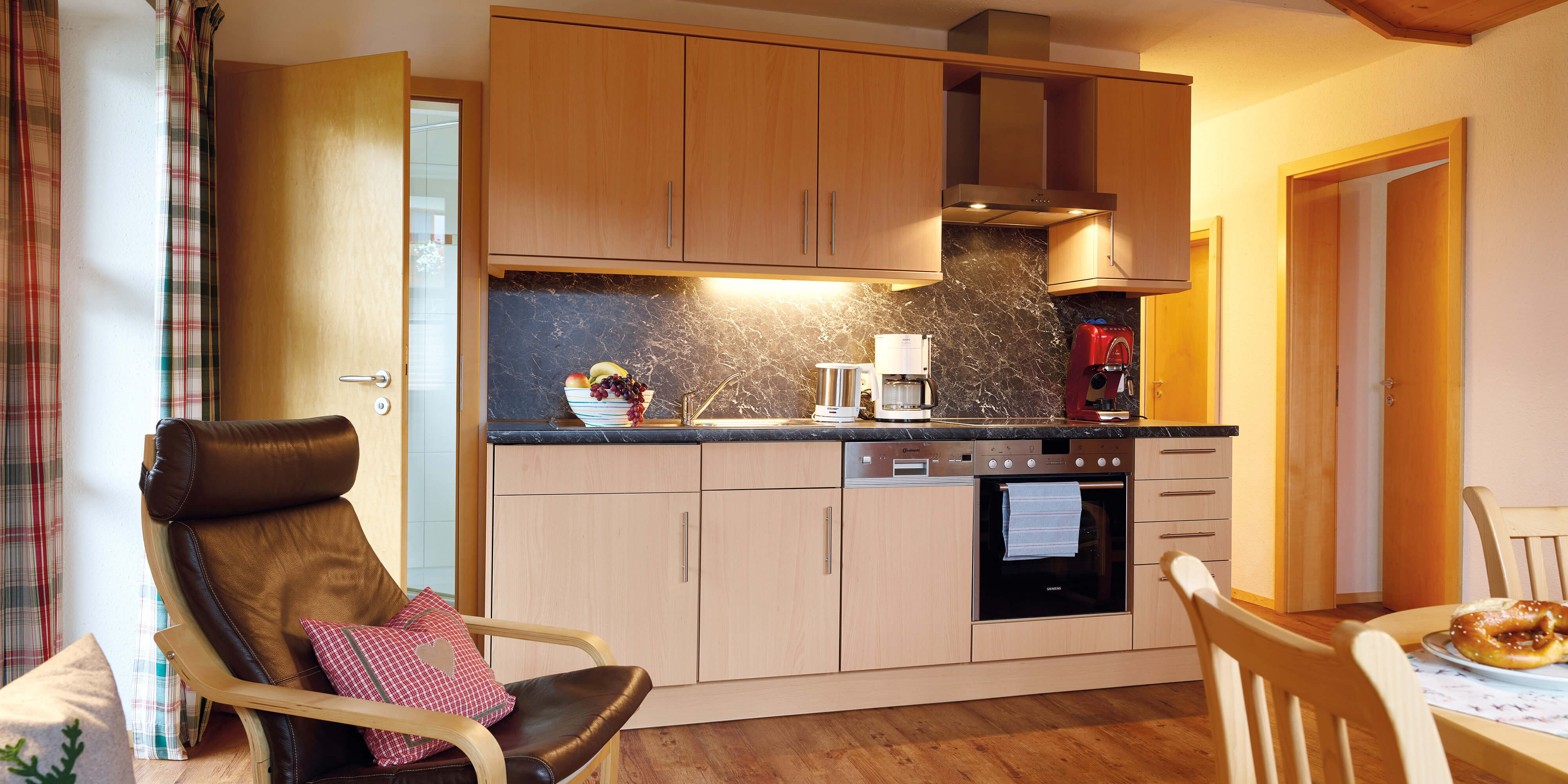 In unseren modernen, gemütlichen Ferienwohnungen haben Sie von jeder Wohnung eine herrliche Aussicht in die Natur. Auf Ihrem Balkon erleben Sie die Berge als großes Freiluftkino.